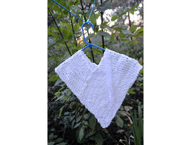 Hand knit white poncho out of chenille yarn. Child's small.