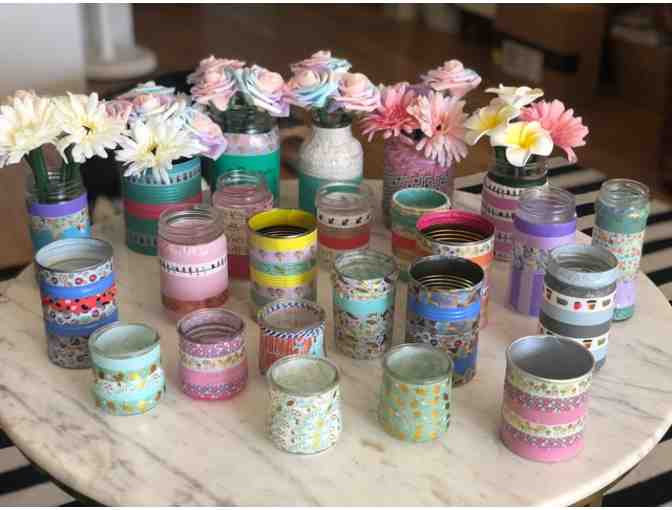 Neverending Stories created pencil holders from decorating recycled material with washi tape.