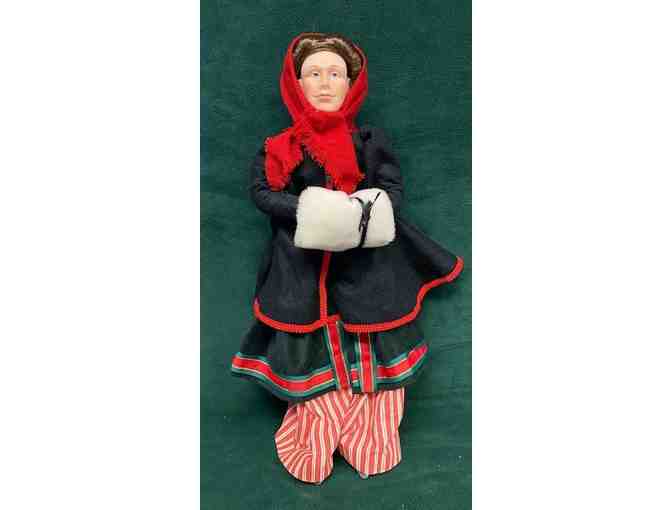 This Mama Smythe Skater collector doll by Dickens is suited up for winter fun and ready to skate! From her plush white muff keeping her hands warm to the red scarf wrapping her head, she is ready to hit the ice.