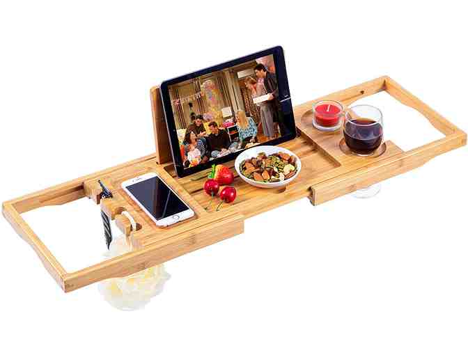 COMPACT SIZE FOR EASY STORAGE: Our bathtub reading tray can be expandable from 24.8IN(63cm) to 37.4IN(95cm). It is more compact than other tub trays available on the market. If you want a compact sized tray, this is a perfect choice.