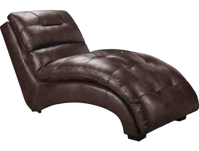 Recline on this Chaise lounge to let the cares of the day fall away. Faux leather upholstery gives you a rich look without the maintenance requirements, and the plush cushioning expands the chaise's comfort. Donated by a Friend of SONH this lounge chair measures 33 inches high x 66 inches long and 31 inches wide.