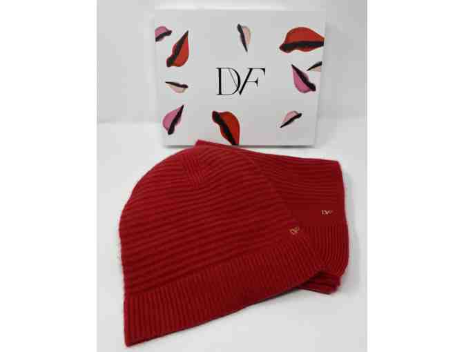 Diane Von Furstenberg Stylish Red Cashmere Wool hat and scarf.