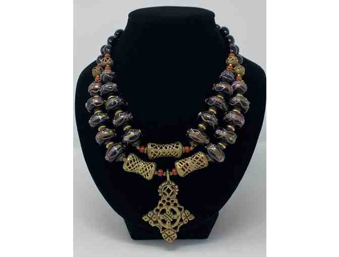 Black Ancient Venetian beads, black onyx, coral, Coptic crosses