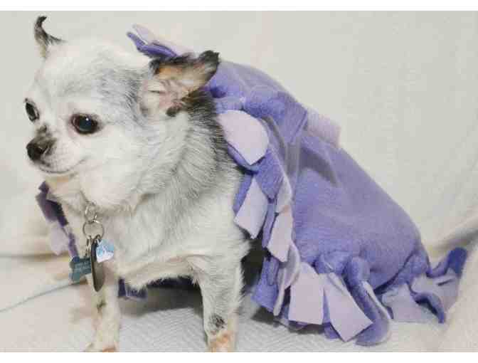 From Teddy's Personal Collection - 20" x 14" lovingly-used double-layer purple/lavender-tied fleece blanket. Winner will also receive a 5x7" photo print of Teddy with this item.