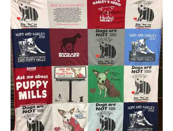 Donated with love by Wynn Wasinger and dedicated to the memory of her very special husband (and Harley's Hero) Bill Wasinger. This full-size memory quilt was created with Bill's favorite Harley's Dream T-shirts. Dog not included.