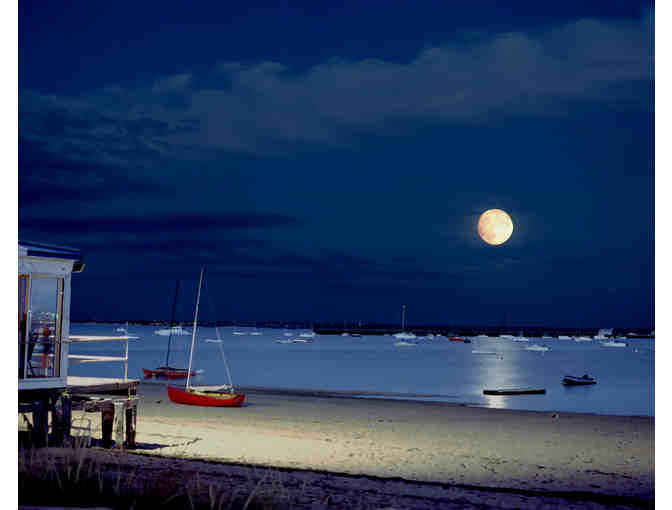 This wonderful 14"x17" color archival print is approximately 19"x21" framed and was photographed by the late Evan T. Lawson, former President of the Board of the Provincetown International Film Festival. It captures Provincetown Harbor during the “blue hour,” with a full moon rising, circa 2005