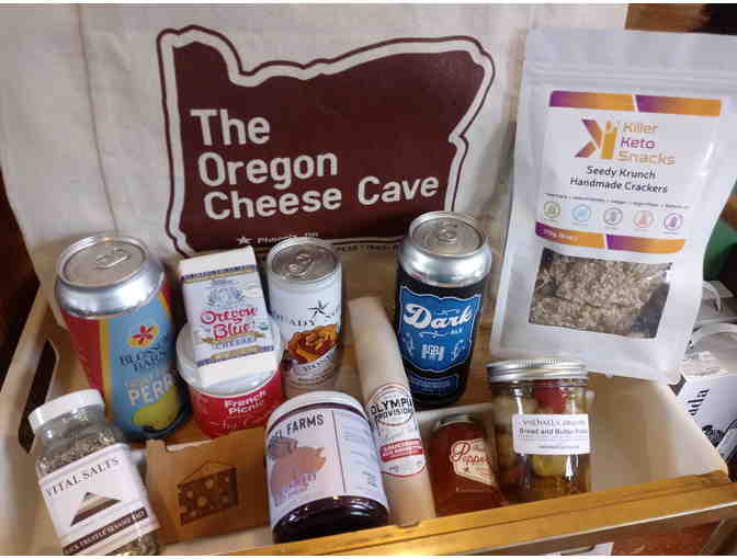 Enjoy a little taste of Oregon State with this custom made Cheese Pairing Tote direct from the Oregon Cheese Cave. The tote is filled with the following goodies, all produced or grown in our wonderful state: