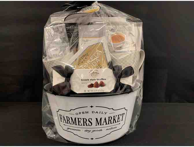 This fun package not only includes gourmet treats, but you also get two ceramic mugs and a mixing bowl. You will enjoy a special coffee and tea, specialty cookies, cheese, crackers, snack mix, peanut brittle and truffles. Courtesy of Sarita Vargas-Parham