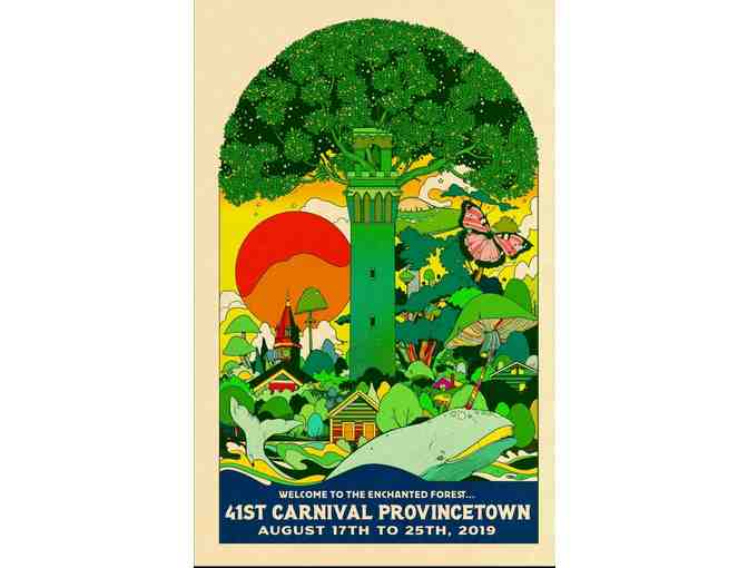 A beautifully illustrated unframed 9" x 14" poster from Provincetown Carnival 2019 by the Provincetown Business Guild. A collector's item and something to always remind you of Ptown.