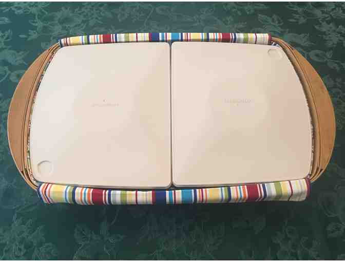 2002 Longaberger Serve It Up Basket with cloth liner, plastic full basket protector and divided protectors with lids