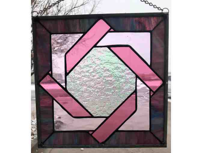 With all the sunshine Colorado gets, this stained glass will dance and sparkle in any window!  Enjoy rose colored light cast across your floor and delight as it travels across the room throughout the day.