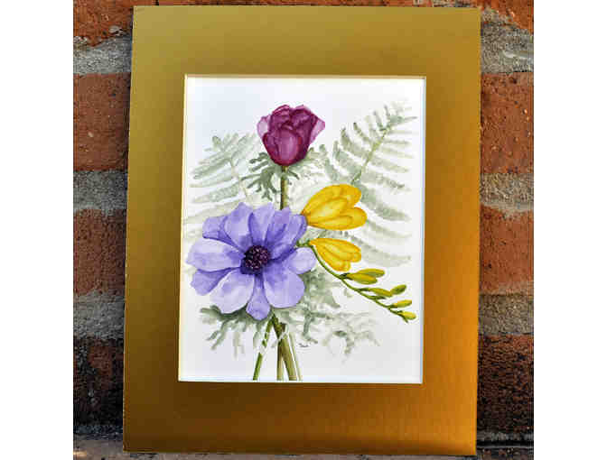 Watercolor - Flowers And Fern - Matted/Unframed by Marlene Koch