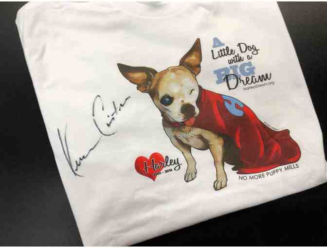 We're excited to offer Harley's special t-shirt which was personally autographed by Kevin Costner! We're grateful to Mr. Costner for his support of Harley and his dream. The shirt is unisex size L.