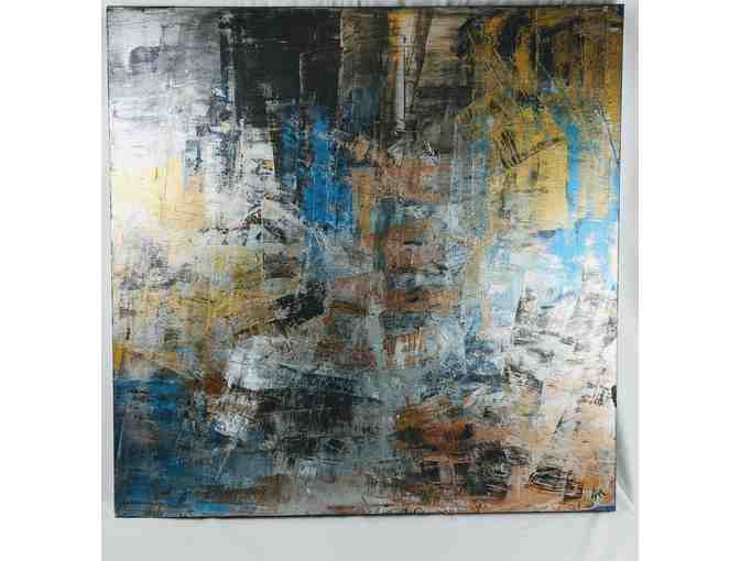 A gorgeous array of colors and moods, this wonderful painting by dynamic abstract artist Maria Sammartino will be an excellent addition to your contemporary art collection. The piece measures 36” x 36” and is filled with graceful movement in gold and copper, blue, black, white and gray ensuring that it will coordinate with your favorite space. Maria Sammartino is a multiple sclerosis warrior whose art was recently featured on the cover of the International Journal of MS Care and was the 2020 Mission Honoree for the Multiple Sclerosis Association of America. Visit https://mariasammartino.com