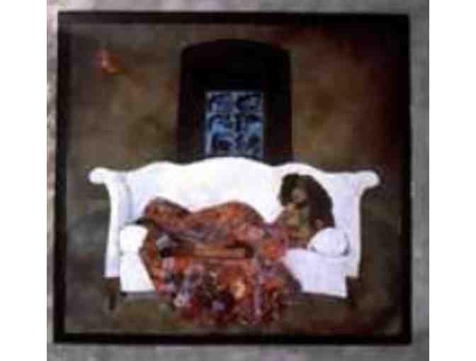 Artist Carlos Quinto Kemm uses the medium of collage as a visual tool to stimulate imaginative awakenings. Since the 1970's, Kemm's mastery of collage has evolved technically, allowing him to refine his techniques to communicate in this unique visual language. "La Primavera" is an exceptional example of Kemm's work. A beautiful woman in white reclines on a couch in this wonderful mixed media piece that measures 24 3/4" x 25 1/2".