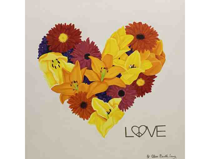 Take a look at this beautiful Love painting, measuring 36" x 36" by Olivia Bennett Teeuws, created to benefit the Race to Erase MS. Internationally reognized as a fine artist who found her gift of art at an early age whild battling Leukemia. What began as a hobby and emotional escape, turned into her passion and full time career. Olivia has spent the last 15 years touring, speaking, painting live and creating collaborative artwork for collections, commercial properties, cause awareness and fundraising. She is involved in many local and national charities and non-profits with a specific focus on childhood illness, health and the environment. She hopes to use her art to inspire others and make the world a more beautiful place.