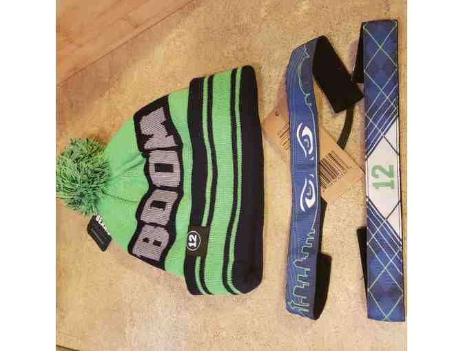 This fun package includes a 12 beanie stocking cap and two Seahawks headbands. The family can share this fun set and show your Seahawks spirit!