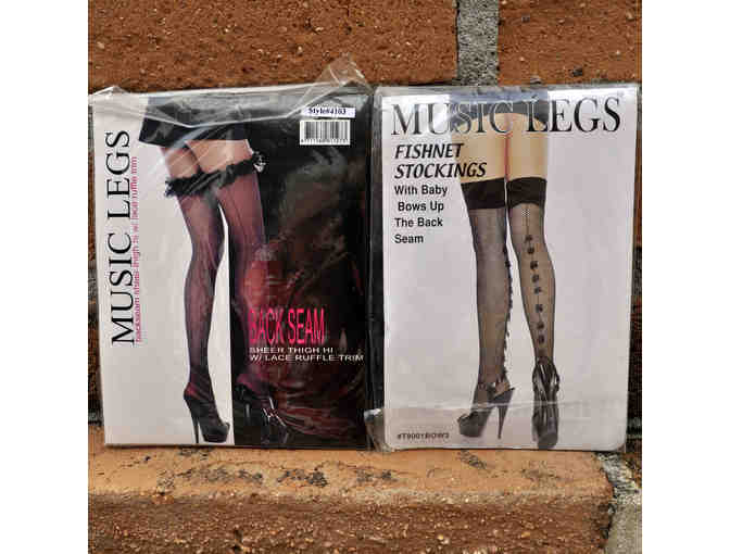 Music Leg Stockings - Two Pair Thigh-High - Black With Trim