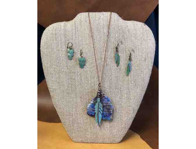 Wire Wrapped Purple Jasper / Feather Necklace and Earring Set