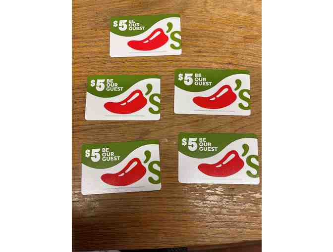 5 $5 gift cards to Chili's restaurant