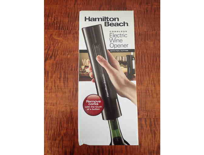 Removes wine corks with the tough of a button. Opens up to thirty bottles when fully charged. Comes with charging base and foil cutter.