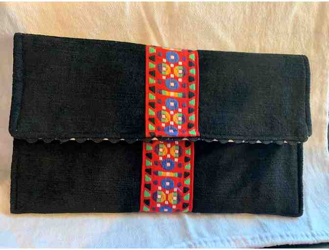 Beautifule Black Winter Clutch from BHive Designs. measures 11x6 with pocket inside.