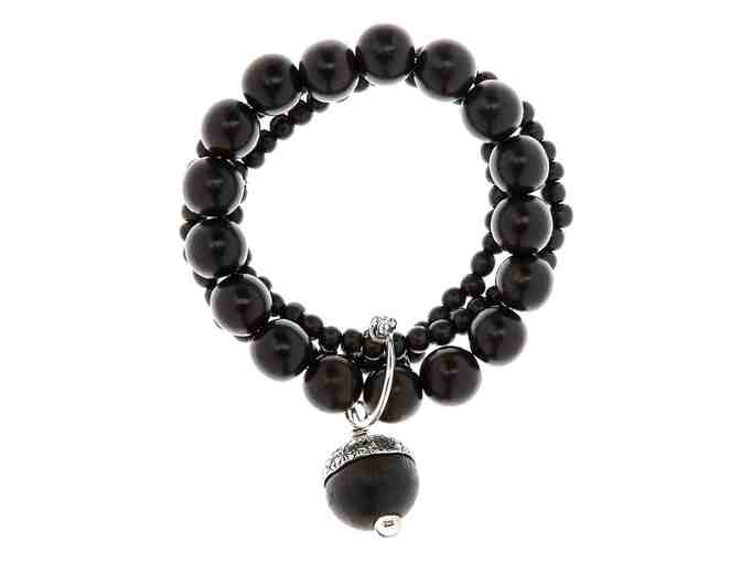 Triple strand black ebony wood w sterling & black wood "acorn". Original Acorn Story included.