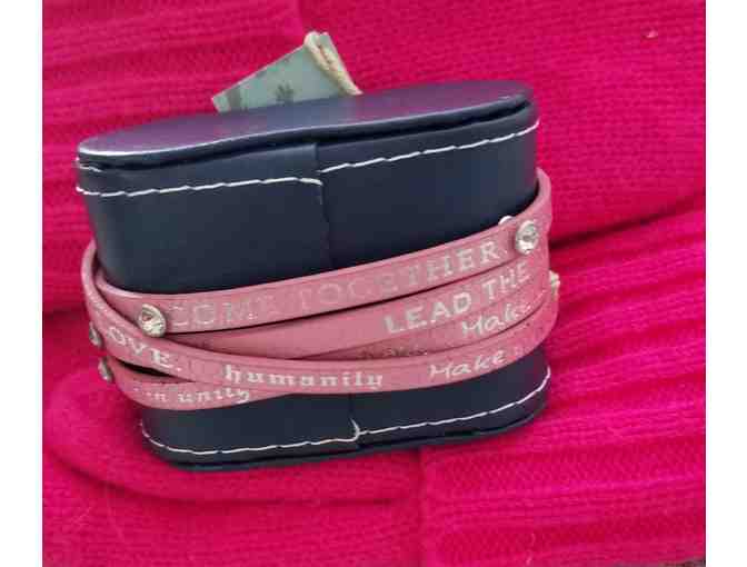 Humanity Pink Ladies Wrap Around Leather Bracelet with crystals and inspirational words. One Size