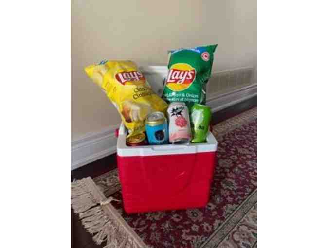 You will receive a cooler with assorted beer, chips and coolers inside!