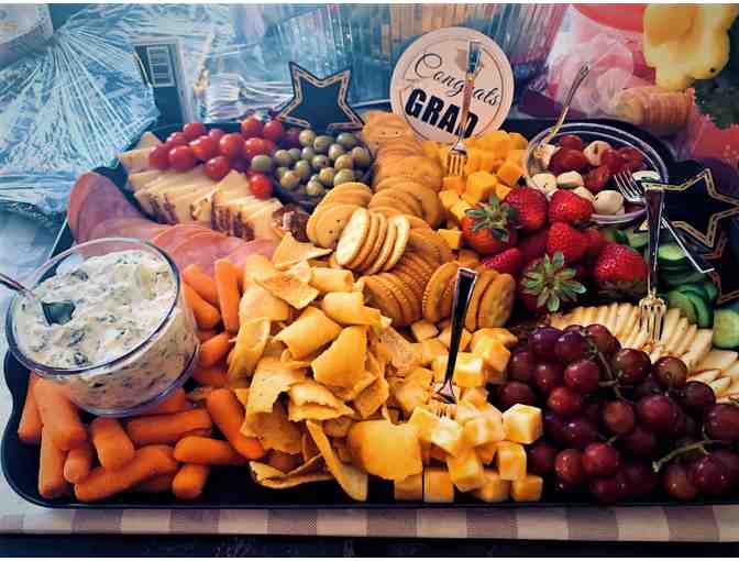 A 12 PERSON CHARCUTERIE BOARD CUSTOMIZED WITH YOUR PREFERENCES OF MEAT OR MEATLESS.