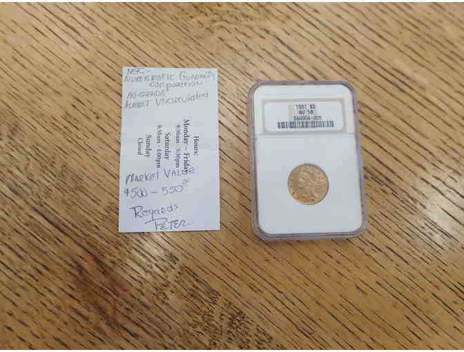 AU-Grade (Almost Uncirculated) 1881 $5 Liberty Head Coin