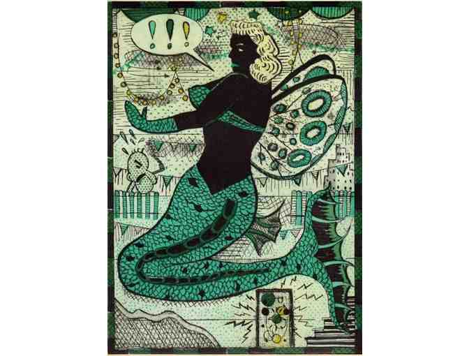 Chicago artist Tony Fitzpatrick has donated an artist proof of his piece Chicago Mermaid.