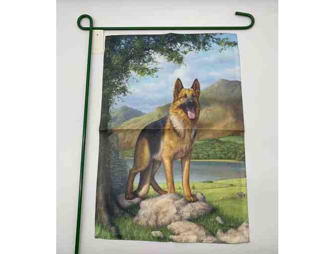 12.5” x 18” German Shepherd Great Outdoors Garden Flag with 36” x 17” x 0.5” Green Garden Flag Stand