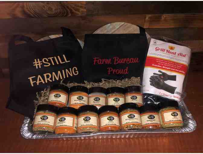 Grilling basket includes spices, grilling gloves, and two aprons!