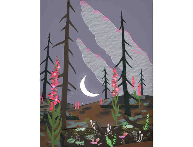 This gorgeous piece measures 9" x 12" and is created from gouaché, colored pencil, and cut paper on mat board.