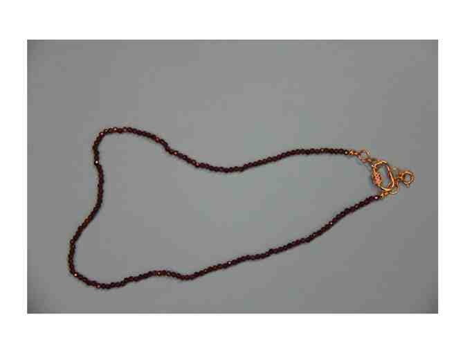 Handmade 3mm Faceted Garnet 16in Necklace with Pave Carabiner Clasp