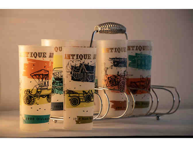 This vintage barware - complete with its own stand - would surely be a great conversation piece. Antique Autos was made by Anchor Hocking in the 1950s and features the cars of yesteryear.