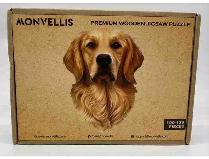 If you are looking for a fun way to train and challenge your brain, there is no better option than a good jigsaw puzzle. Monvellis premium wooden puzzles are super detailed pictures printed directly on wood then laser-cut to ensure smooth edges that fit perfectly together. This puzzle is shaped like a beautifully realistic head of a golden retriever. His dark brown eyes stare deeply into yours and his fluffy golden neck hair makes you want to reach out and pet him. Several surprise pieces of this wooden puzzle are dog shaped. What a great way to have some family fun while improving your short-term memory, problem solving skills and attention to details.