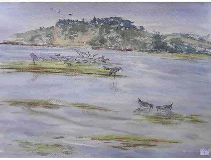Waterbirds on Tomales Bay. A delightful 15" x 20" watercolor on heavyweight Veritable Papier D'Arches Torchon paper.