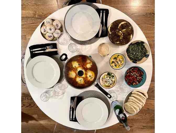 Freshly cooked vegetarian Israeli dinner for up to 6 people, delivered to the winning bidder's home at their convenience. Items include: