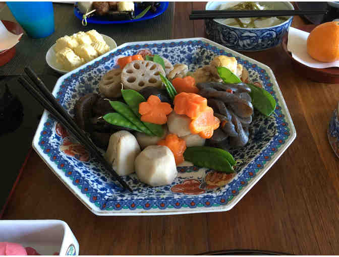 Homemade Japanese dinner for 5 prepared by a Japanese grandmother of West Portal students with assistance from us :-)