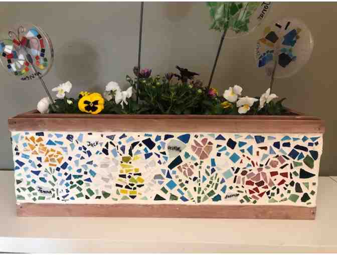 Each student in Miss Robrecht's class made a flower, bird, butterfly or snail that was grouted into the redwood planter or made into a garden stake.