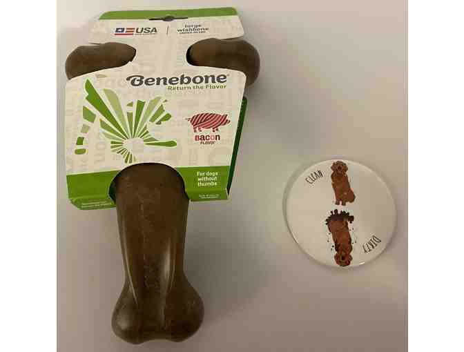 Clean/Dirty Dog Dishwasher Magnet with Golden Retriever + Large Bacon Benebone