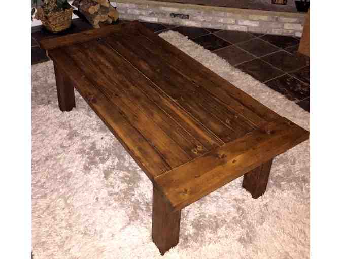 Stained in a dark walnut color. Dimensions are 53" long, 24.5" wide & 18" high.
