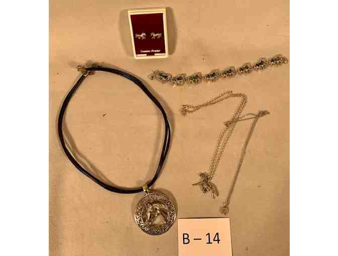 3 necklaces, 1 earrings, 1 abalone bracelet