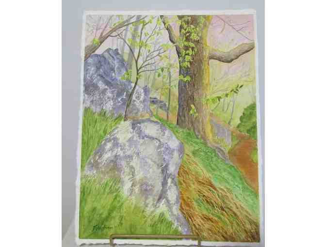 Peace and quiet are yours as you view this beautiful watercolor. The Makawao Forest on Maui comes alive on this 11 x 14 canvas. This original is by Betty Simon, a well known artist in Hawaii. The canvas is unframed and can be hung as it is or you can frame it to go with your décor.