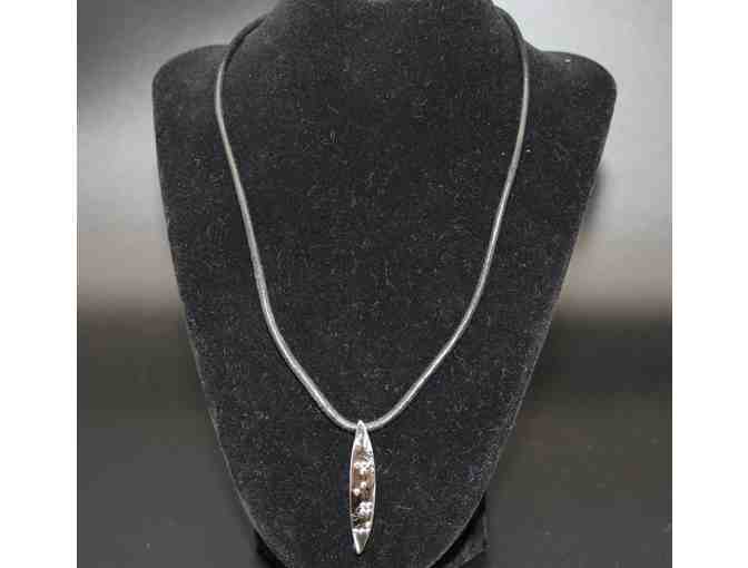 Silver-Plated Braille "Strength" Pendant on black leather necklace