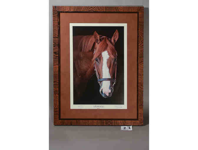 Undefeated Triple Crown Winner, JUSTIFY, strikes a dramatic portrait against a black background in Bob Baffert's Barn 33 at Churchill Down in Louisville Racing under WinStar Farm's colors. He just paused for just a moment when Doug captured this image. An amazing moment before he retired from racing.