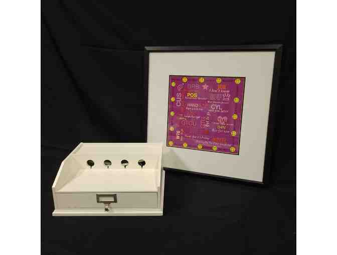 Fun decor for a teen's room including a white charging station and black framed wall print entitled "Got IM'd?". Frame measures 21 1/4" square.