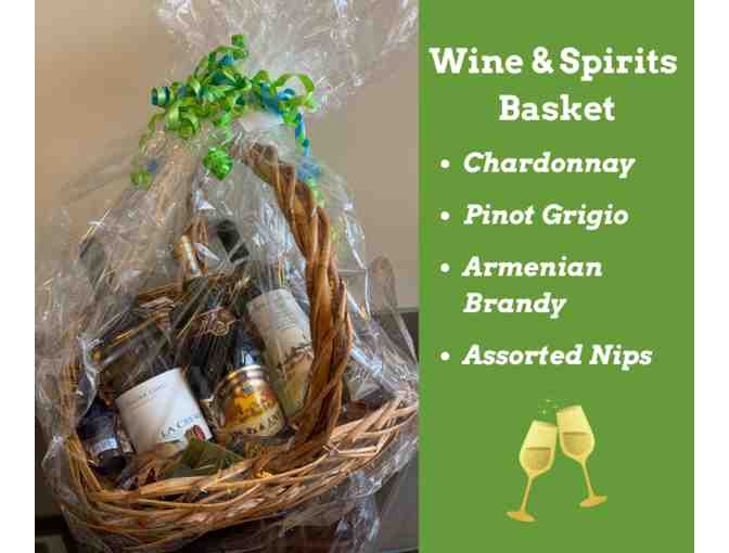 Enjoy a gourmet selection of white wine and spirits with this crafted basket from the Bottle Shop of Unionville (Unionville, CT). Whether you're having an intimate dinner al fresco or celebrating a special occasion, you'll be toasting with something please for your palette.